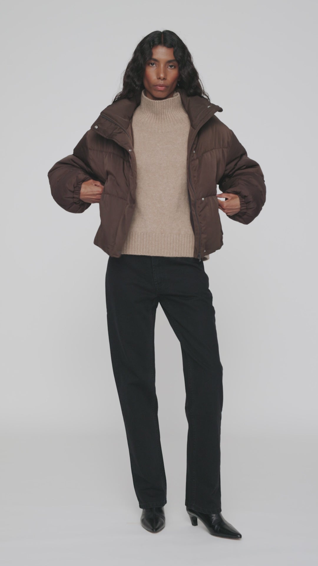 The Orson jacket features a shorter, boxy cut and a high stand-up collar that can be worn open or fully zipped up to the neck. Made from waterproof fabric that protects against rain and wind. Filled with lightweight insulation that provides warmth without adding bulk. Unlike down, the synthetic filling retains its insulating properties even in damp conditions and dries quickly. A modern, functional design created with everyday comfort in mind.