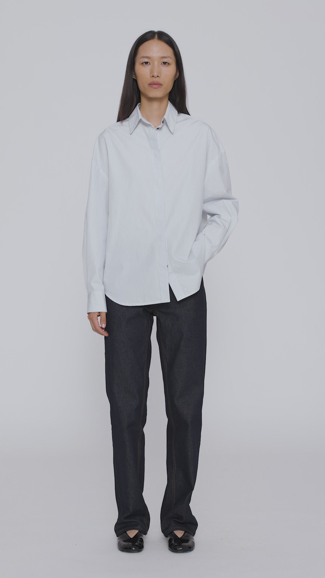 A classic shirt with long sleeves and cuffs. It features slightly dropped shoulders and a concealed button placket. Made of 100% cotton.