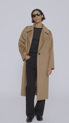The CARTER long coat features a straight, slightly relaxed silhouette and is crafted from double-face wool — two layers of fabric are hand-stitched together, eliminating the need for a lining and creating a clean, refined finish on the inside. The coat remains lightweight, yet warm and structurally stable. A wide collar and concealed buttons highlight its minimalist character. Available in two color options.