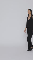 The KINTO top is made of a flowing fabric that maintains its shape. It features a deep, rounded neckline and a cropped, boxy cut. Perfect under blazers, it also pairs well with denim or creased trousers.